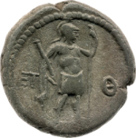 laureate draped and cuirassed bust of Hadrian, right, seen from rear