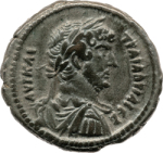 laureate draped and cuirassed bust of Hadrian, right, seen from rear