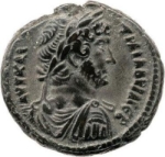 laureate draped and cuirassed bust of Hadrian, right, seen from rear