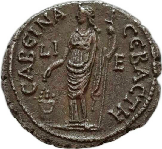 ‘versa incenso sopra altare’ (D); ‘streut Weihrauch auf… Altar’ (K): but the illustrations suggest that she is holding corn ears over the altar. Thus she would be likened to Demeter (as on the coins where she is shown seated) rather than Eusebeia, as suggested by D. On the other hand, there seem no corn ears on the similar design with obverses of Sabina, but they are surely the same design?