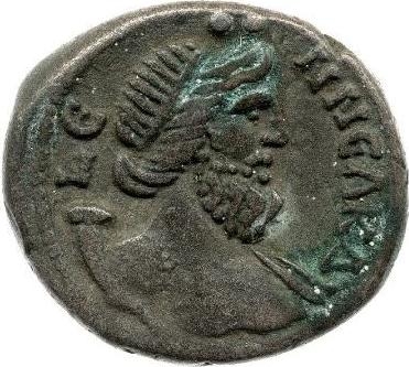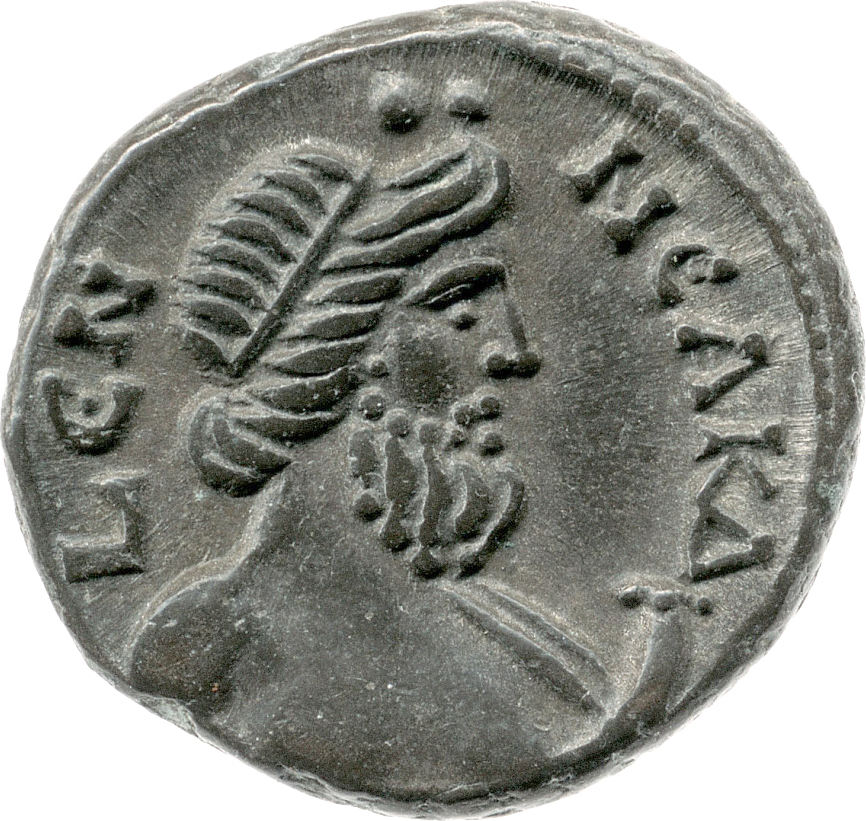 draped bust of Nilus, right, crowned with taenia and lotus-buds, cornucopia at shoulder