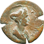 The coin looks more convincing than those attributed to year 21 (see below), especially the left facing barehead of Hadrian. The second specimen, Matthijs 1025 (probably from the same dies), has an illegible obv. inscription, but also has a left facing head on the obv. On its rev. a few letters are visible, at 2 o’clock, which might be [ ]CA[ ]; there does also seem to be an L to the left of the bust of Sabina, and a numeral to the r. It could be a K, but that is unsure. The two coins are sufficiently convincing to be put in the catalogue, as bronze coins corresponding to the well-attested silver; but doubts remain about the inscriptions and date, so confirmation is required.