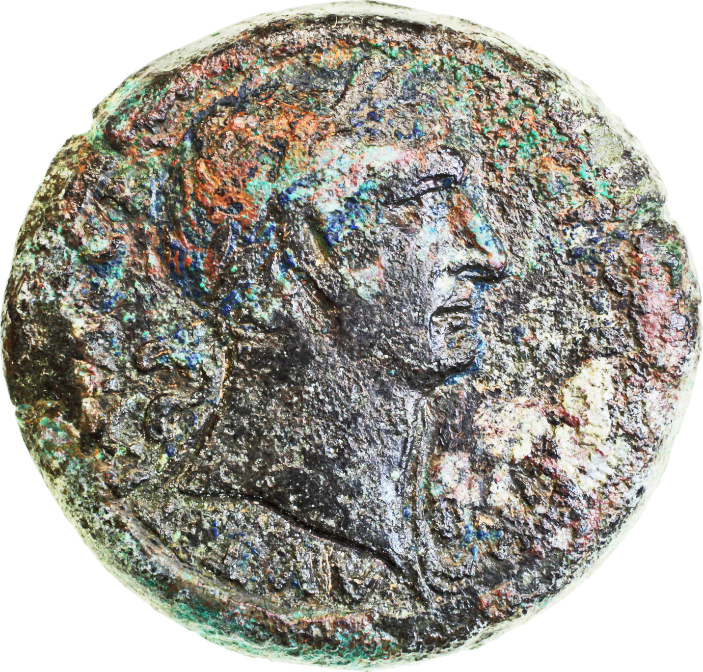 laureate bust of Trajan, right, nude and with aegis on left shoulder