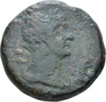 laureate bust of Trajan, right, draped and cuirassed, seen from rear