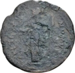 Neith/Athena standing, facing, head left, wearing helmet and aegis, holding oryx, left, in right hand, spear in left hand resting on shield