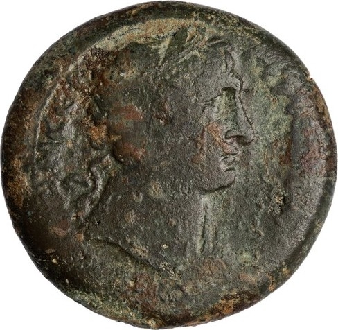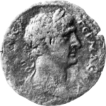 laureate bust of Trajan, right, nude and with aegis on left shoulder