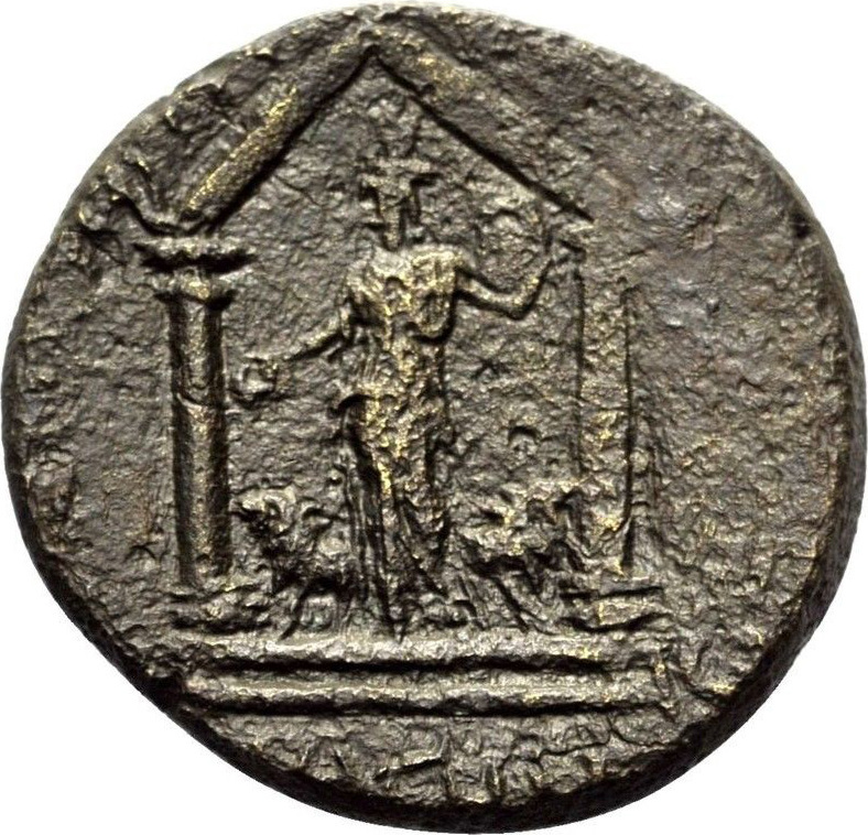 Added 21.7.16. Attributed by Ebay to Magnesia ad Sipylum. Cybele does indeed occur there, and, since there are coins of Sabina, we should expect something for Hadrian. But the inscription is not legible.