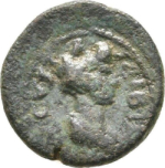 Genius (?) standing facing, head left, holding patera and cornucopia; at his feet, altar