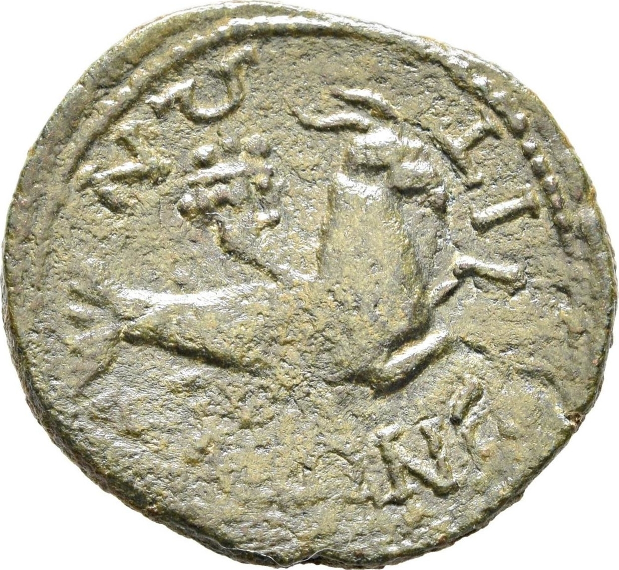 GIC 485 (?, 'vase' or 'cantharos' (sometimes in punch with serrated edge)) ; the obv. legend was read as ΑΔΡΙΑΝ-ΝΟC by Psoma. cmk placed to GIC 485 as from Maronea