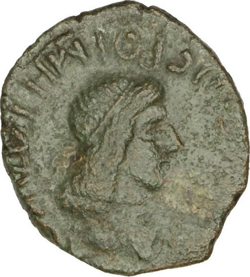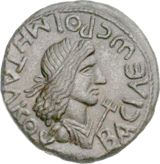diademed and draped bust of Rhoemetalces, right; in front, trident