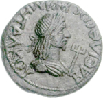 diademed and draped bust of Rhoemetalces, right; in front, trident
