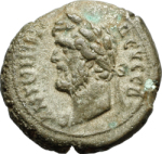 laureate head of Antoninus Pius with traces of drapery, left