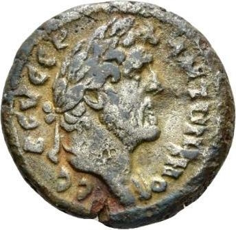 laureate head of Antoninus Pius with traces of drapery, right