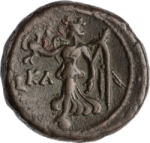 Nike advancing (on globe), left, holding wreath and palm-branch