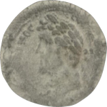 laureate head of Antoninus Pius with traces of drapery, left