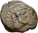 laureate head of Antoninus Pius with traces of drapery, right (?)