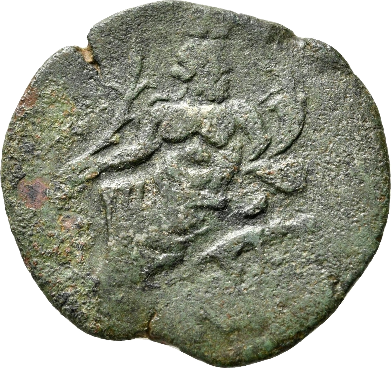 laureate head of Antoninus Pius with traces of drapery, left