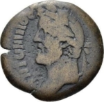 laureate head of Antoninus Pius with traces of drapery, left