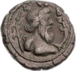 draped bust of Nilus, right, crowned with taenia and lotus-buds; at shoulder, reed; before, cornucopia, from which issues Genius holding wreath