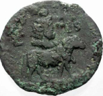 draped bust of Ammon, right, crowned with disk, on back of ram, walking, right
