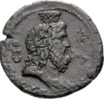 draped bust of Sarapis wearing kalathos and laurel wreath, right