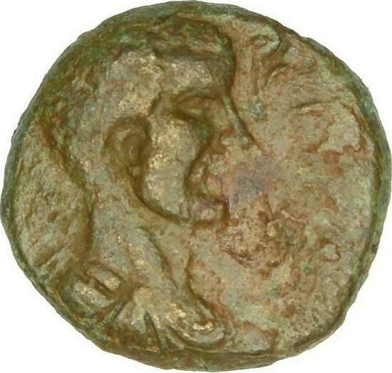 turreted Tyche standing, left, holding standard and aplustre; to left, uncertain object (thin high altar or small statue?); to right, dove standing, left