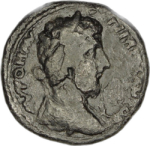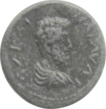 bare-headed bust of Marcus Aurelius (thin face with very long beard) wearing cuirass and paludamentum, right, seen from rear