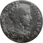 bare-headed bust of Commodus (youthful) wearing paludamentum, right, seen from rear