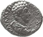bare-headed bust of Commodus (short beard) wearing cuirass and paludamentum, right