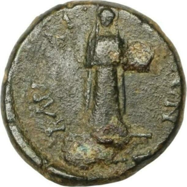 cult statue of Artemis Kindyas standing on base, facing, crossing arms