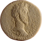 laureate-headed bust of Commodus (short beard?) wearing cuirass and paludamentum, right