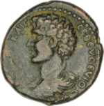 bare-headed bust of Marcus Aurelius (youthful) wearing (cuirass and) paludamentum, left |