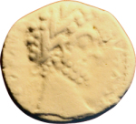 draped bust of Abgar (bearded) wearing diademed tiara, right