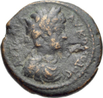 laureate-headed bust of Commodus (youthful) wearing cuirass and paludamentum, right, seen from front