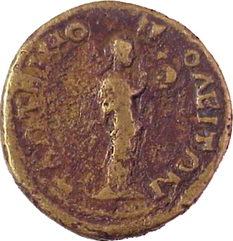 laureate head of Antoninus Pius, right