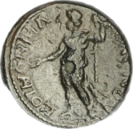 male figure (emperor or Alexander the Great?) standing, facing, head, left, holding patera and long sceptre