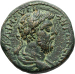 laureate-headed bust of Marcus Aurelius wearing cuirass and paludamentum, right