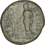 Athena standing, left, holding spear, feeding serpent from patera; serpent entwined in olive-tree