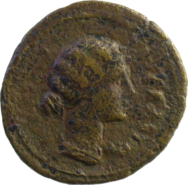draped bust of Faustina II, right