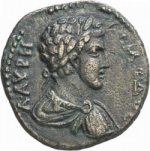 laureate-headed bust of Commodus (youthful) wearing cuirass and paludamentum, right, seen from rear