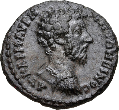 bare-headed bust of Marcus Aurelius wearing cuirass, right