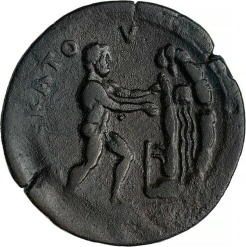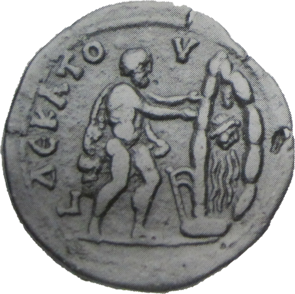 Stack's 10. 6. 1970, coll. Knobloch, 564 = NFA-Leu 16. 5. 1984, coll. Garrett I, 803 = SAN 4, 4 (1972–3), 66 = CNA 13 (4. 12. 1990), coll. Wetterstrom, 197 = Voegtli, Heldenepen, p. 44 (pl. 12r (rev)) |