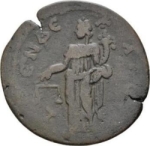 Dikaiosyne standing, facing, head, left, holding scales and cornucopia