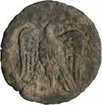 eagle standing, facing, head, right (or left), spreading wings, (holding wreath in beak)