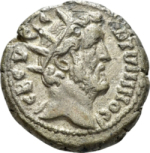 radiate head of Antoninus Pius with traces of drapery, right