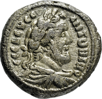 laureate-headed bust of Antoninus Pius wearing cuirass and paludamentum, right, seen from rear
