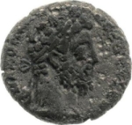 emperor (Commodus), laureate-headed, in military dress, standing, left, raising hand, holding long sceptre