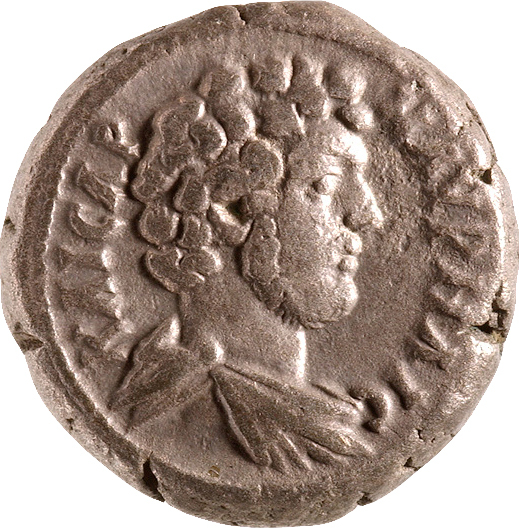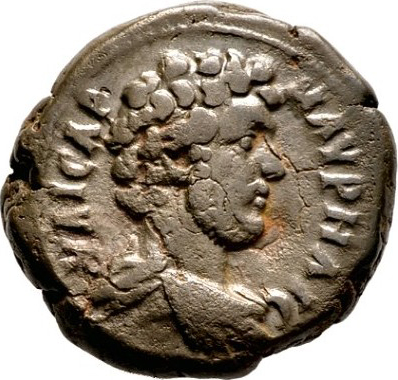 bare-headed bust of Marcus Aurelius (short beard) wearing paludamentum, right
