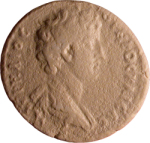 bare-headed bust of Marcus Aurelius (short beard) wearing paludamentum, right, seen from centre