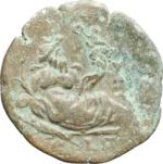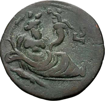 Nilus, with crocodile beside him, reclining, right, holding reed and cornucopia, from which issues Genius holding wreath; (in field, ΙϚ)
